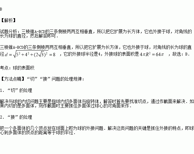 設(shè)A、B、C、D是球面上的四點(diǎn),AB、AC、AD兩兩互相垂直,且