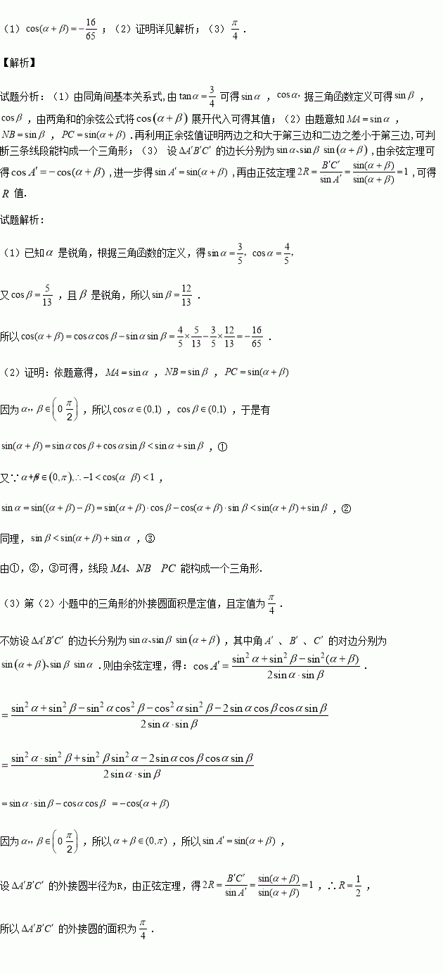 (3)探究第(2)小題中的三角形的外接圓面積是否為定值?若是,求出該定值;若不是,請(qǐng)說明理由.