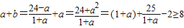 | A、a+b有最大值8 | B、a+b有最小值8 | C、ab有最大值8 | D、ab有最小值8 |