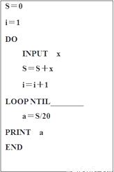 | A.i=20 | B.i<20 | C.i>=20 | D.i>20 |