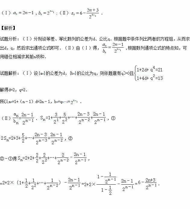 (本小題12分)設(shè){an}是等差數(shù)列,{bn}是各項(xiàng)都為正數(shù)的等比數(shù)列,且a1=b1=1,a3+b5=21,a5+b3=13
