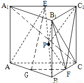 (3)根據(jù)E是A1C1的中點,得到E到平面BCC1B1的距離是A1到平面BCC1B1的距離一半,得到以△B1C1F為底的高等于A1B1=,算出△B1C1F的面積并結(jié)合錐體體積公式,可算出三棱錐P-B1C1F的體積.