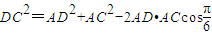 分析:(Ⅰ)利用三角形的面積公式表示出三角形ADC的面積,把已知的面積,以及AC、AD的長代入,求出sin∠DAC的值,由B的范圍,得到∠BAC的范圍,進而確定出∠DAC的范圍,利用特殊角的三角函數(shù)值求出∠DAC的度數(shù),再由AD,AC及cos∠DAC的值,利用余弦定理即可求出DC的長;