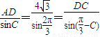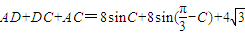 ,用∠C表示出∠DAC,在三角形ADC中,由AC,以及sin∠ADC,sinC,sin∠DAC,利用正弦定理表示出AD及DC,表示出三角形ADC的周長,整理后再利用特殊角的三角函數(shù)值及兩角和與差的正弦函數(shù)公式化為一個角的正弦函數(shù),由∠ADC的度數(shù),得到C的范圍,可得出這個角的范圍,根據(jù)正弦函數(shù)的圖象與性質得到正弦函數(shù)的值域,確定出正弦函數(shù)的最大值,即可得到周長的最大值.