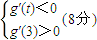 ∵g(x)在區(qū)間(t,3)上總不是單調(diào)函數(shù),且g′(0)=-2