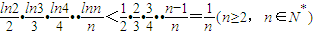 ∵n≥2,n∈N*,則有0<lnn<n-1,