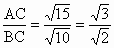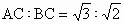 ∠ACB=90°,CD⊥AB于D,AD=3,BD=2,則AC∶BC的值是[