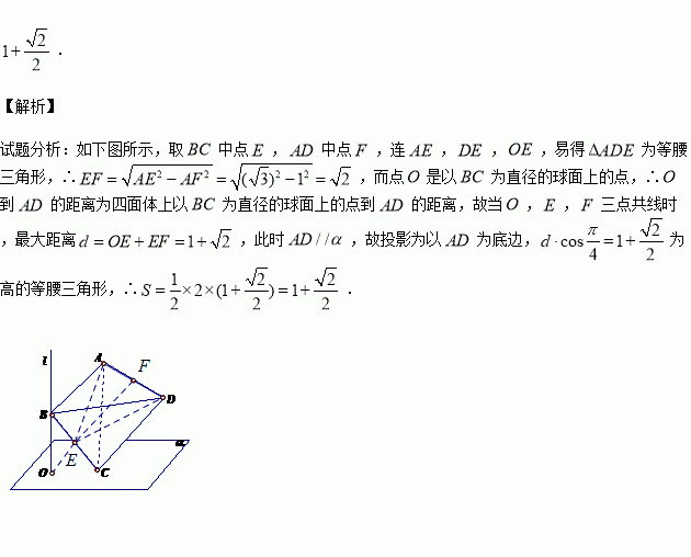 上的射影面積為 .