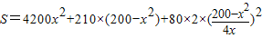 某小區(qū)要建一座八邊形的休閑小區(qū),它的主體造型的平面圖是由二個相同的矩形ABCD和EFGH構(gòu)成的面積為200 m2的十字型地域,計劃在正方形MNPQ上建一座“觀景花壇”,造價為4200元/m2,在四個相同的矩形上(圖中陰影部分)鋪花崗巖地坪,造價為210元/m2,再在四個空角(如ΔDQH等)上鋪草坪,造價為80元/m2。