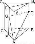 【答案】分析:根據(jù)題意畫出圖形,過(guò)B作BF⊥AC,過(guò)B1作B1E⊥A1C1,連接EF,過(guò)D作DG⊥EF,連接AG,證明DG⊥面AA1C1C,∠DAG=α,解直角三角形ADG即可.