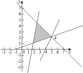 由$\left\{\begin{array}{l}{x+y-7=0}\\{x-3y+1=0}\end{array}\right.$,解得$\left\{\begin{array}{l}{x=5}\\{y=2}\end{array}\right.$,即A(5,2).