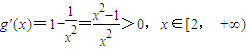 也即在對(duì)任意的x∈[2,+∞)恒成立.