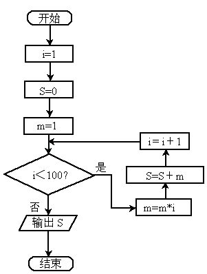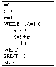 本題中,m=m*i是用來求i!的,S=S+m是用來求前i項和且本題解法也具有普遍性和通用性,如將m=1變?yōu)?/FONT>m=0,m=m*i變?yōu)?/FONT>m=m+i,則該題就變成了求1+(1+2)+(1+2+3)+…+(1+2+…+100)的和的程序.