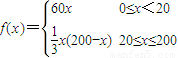 提高過江大橋的車輛通行能力可改善整個城市的交通狀況.在一般情況下,大橋上的車流速度v(單位:千米/小時)是車流密度x(單位:輛/千米)的函數(shù).當橋上的車流密度達到200輛/千米時,造成堵塞,此時車流速度為0;當車流密度不超過20輛/千米時,車流速度為60千米/小時.研究表明:當20≤x≤200時,車流速度v是車流密度x的一次函數(shù).