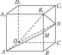 ∵AM∥DN,∴B1D與AM所成的角就等于B1D與DN所成的角,即∠B1DN或其補(bǔ)角.