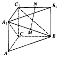| 解:由三視圖可知,在這個(gè)多面體的直觀圖中,AA1⊥平面ABC, 且AC⊥BC,AC=BC=CC1=a, (Ⅰ)連接AC1,AB1,因?yàn)锽C⊥平面ACC1A1, 所以BC⊥AC1,在正方形ACC1A1中,A1C⊥AC1, 又因?yàn)锽C∩A1C=C, 所以AC1⊥平面A1BC, 由正方形性質(zhì)知AB1過A1B的中點(diǎn)M, 在△AB1C1中,MN∥AC1, 所以MN⊥平面A1BC。 |