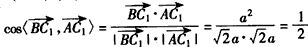| (Ⅱ)由題意CA,CB,CC1兩兩垂直, 故以C為原點(diǎn),CA,CB,CC1所在直線分別為x軸,y軸,z軸, 建立空間直角坐標(biāo)系, 又AC=BC=CC1=a,則B(0,a,0),B1(0,a,a),A(a,0,0), 則 又AC1⊥平面A1BC, 故 所以, 因此直線BC1和平面A1BC所成角的大小為30°。 (Ⅲ)AB中點(diǎn)E的坐標(biāo)為 易知 設(shè)二面角A-A1B-C為θ, 則 由題意,知θ為銳角,所以θ=60°, 即二面角A-A1B-C為60°。 |