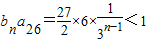 【答案】分析:在等差數(shù)列{an}中,由a1=1,a7=4求出a3和a26,在等比數(shù)列{bn}中,b1=6,b2=a3求出bn,代入bna26<1可求最小正整數(shù)n.