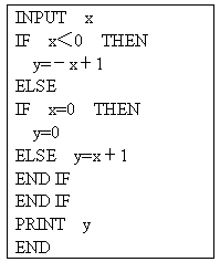 由于函數(shù)是一個(gè)分段函數(shù),所以輸入x的值后應(yīng)根據(jù)x的值所在的范圍,選擇相應(yīng)的解析式代入求出其函數(shù)值,故應(yīng)用條件語(yǔ)句,又因?yàn)閷?shí)數(shù)x的值共分為三個(gè)范圍,所以還應(yīng)用到條件語(yǔ)句的嵌套. 在求分段函數(shù)的函數(shù)值時(shí),由于自變量x的值不同,其函數(shù)值的求法不同,故先對(duì)x的值進(jìn)行判斷,根據(jù)其具體值選擇不同的計(jì)算方法,故用條件語(yǔ)句進(jìn)行算法設(shè)計(jì); |
