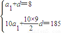 已知等差數(shù)列{an}中,a2=8,前10項和S10=185.