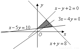 點評:本題考查不等式中的線性規(guī)劃知識,畫出平面區(qū)域與正確理解目標函數z=3x-4y的幾何意義是解答好本題的關鍵.