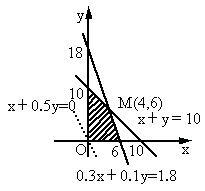 此時 z=1×4+0.5×6=7(萬元).∵ 7>0,∴當(dāng)x=4,y=6時,z取得最大值.投資人用4萬元投資甲項目,6萬元投資乙項目,在確保資金虧損不超過1.8萬元的前提下,使可能的盈利最大. |