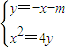 (II)由于直線l的方程為y=x+m,所以直線l'的方程為y=-x-m,由