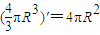 對于半徑為R的球,若將R看作(0,+∞)上的變量,請你寫出類似于①的式子: