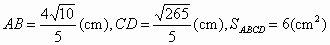 ABCD的上底AD長(zhǎng)1 cm,下底BC長(zhǎng)4 cm,對(duì)角線AC長(zhǎng)4 cm,BD長(zhǎng)3 cm.求梯形ABCD的兩腰AB,CD的長(zhǎng)及面積.![]()
