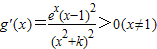 (1)當(dāng)△=4-4k<0,即當(dāng)k>1時(shí),g'(x)>0在R上恒成立,故函數(shù)g(x)在R上為增函數(shù)(10分)