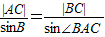 在△ABC中,由正弦定理得變形得|AC|sin∠BAC=|BC|sinB,