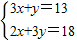 某企業(yè)生產(chǎn)甲、乙兩種產(chǎn)品,已知生產(chǎn)每噸甲產(chǎn)品要用A原料3噸,B原料2噸;生產(chǎn)每噸乙產(chǎn)品要用A原料1噸,B原料3噸,銷售每噸甲產(chǎn)品可獲得利潤5萬元,每噸乙產(chǎn)品可獲得利潤3萬元.該企業(yè)在一個(gè)生產(chǎn)周期內(nèi)消耗A原料不超過13噸,B原料不超過18噸.那么該企業(yè)可獲得最大利潤是