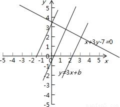 【答案】分析:由題意說明直線l1:x+3y-7=0,l2:y=kx+b垂直,求出k,根據(jù)垂直以及l(fā)2:y=kx+b中b的幾何意義,求出b的范圍.