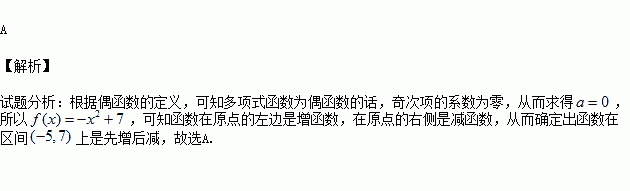 已知f(x)=(a-1)x2+3ax+7為偶函數(shù),則f(x)在區(qū)間(-5,7)上為( )