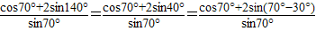 【答案】分析:根據(jù)三角函數(shù)的化解原則:切化弦進行化解,然后再根據(jù)40°=70°-30°根據(jù)兩角差的正弦公式進行化解即可求解