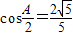 由余弦定理得a2=b2+c2-2bccosA=20,∴