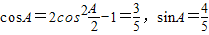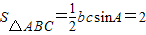 【答案】分析:(1)利用二倍角公式利用=求得cosA,進而求得sinA,進而根據(jù)求得bc的值,進而根據(jù)三角形面積公式求得答案.