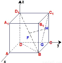 (本題滿分12分)如圖所示,在棱長為4的正方體ABCD—A1B1C1D1中,點E是棱CC1的中點。