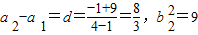 又因為b2是等比數(shù)列中的第三項,所以與第一項同號,即b2=-3