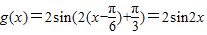 (II)由題可知:,將2x看成整體,結(jié)合正弦函數(shù)y=sinz的單調(diào)區(qū)間,即可求出g(x)的單調(diào)遞增區(qū)間.