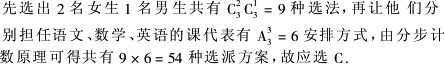 從3名男生和3名女生中,選出2名女生和1名男生分別擔(dān)任語文、數(shù)學(xué)、英語的課代表,則選派方案共有
