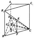 | (Ⅰ)證明:取BC中點(diǎn)F,連結(jié)EF,則 連結(jié)AF,則ADEF為平行四邊形,從而AF∥DE, 又DE⊥平面BCC1, 故AF⊥平面BCC1, 從而AF⊥BC,即AF為BC的垂直平分線,所以AB=AC. (Ⅱ)解:作AG⊥BD,垂足為G,連結(jié)CG,由三垂線定理知CG⊥BD, 故∠AGC為二面角A-BD-C的平面角, 由題設(shè)知,∠AGC=60°, 設(shè)AC=2,則 又AB=2,BC=2 由 解得AD= 又AD⊥AF,所以四邊形ADEF為正方形, 因?yàn)锽C⊥AF,BC⊥AD,AF∩AD=A, 故BC⊥平面DEF, 因此平面BCD⊥平面DEF, 連結(jié)AE、DF,設(shè)AE∩DF=H,則EH⊥DF,EH⊥平面BCD, 連結(jié)CH,則∠ECH為B1C與平面BCD所成的角, 因ADEF為正方形,AD= 又 所以 所以∠ECH=30°, 即B1C與平面BCD所成的角為30°。 |