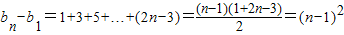 n-1=2n-3,以上各式相加后,利用等差數(shù)列的前n項和公式化簡后,將b