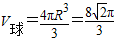 用與球心距離為1的平面去截球,所得的截面面積為π,則球的休積為_____________。