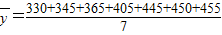 水稻產(chǎn)量y | 330 | 345 | 365 | 405 | 440 | 450 | 455 |