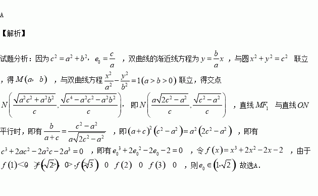 與直線ON平行時(shí),雙曲線離心率取值為
