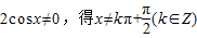 【答案】分析:(1)根據分式有意義的條件可得,cosx≠0,求解即可得函數的定義域;利用二倍角公式及輔助角對函數化簡可得f(x)=,結合正弦函數性質可求函數的值域,