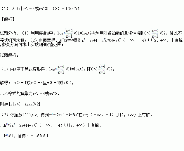 (2)若A∩B≠∅,求實(shí)數(shù)k的取值范圍.