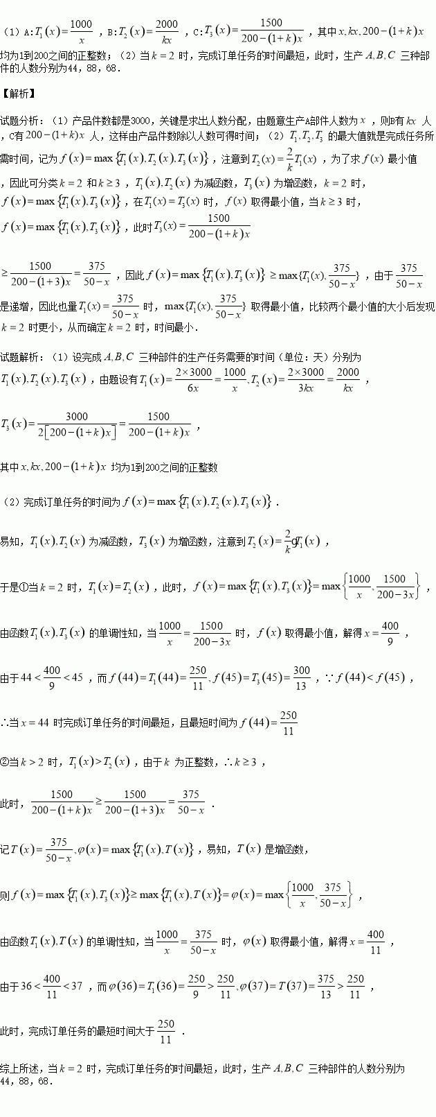 (2)假設(shè)這三種部件的生產(chǎn)同時開工,試確定正整數(shù)