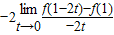 【答案】分析:由導(dǎo)數(shù)的定義可 知,==-2f′(1),則對已知函數(shù)求導(dǎo),把x=1代入到導(dǎo)函數(shù)中可求